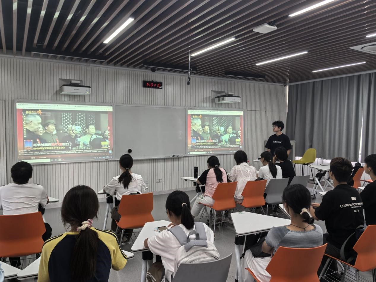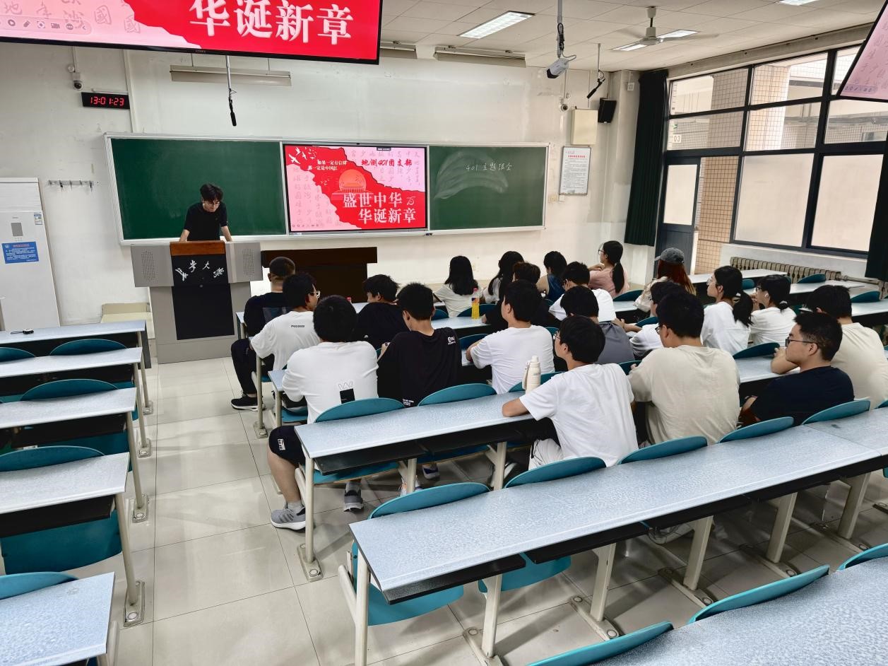 各班团支书带领大家围绕新中国成立以来的辉煌成就、改革开放的伟大历程、中国特色社会主义进入新时代的崭新面貌等内容进行学习,并强调了青年学子肩负的历史使命,倡议大家以更加饱满的热情投身于学习和社会实践中,以实际行动践行社会主义核心价值观。