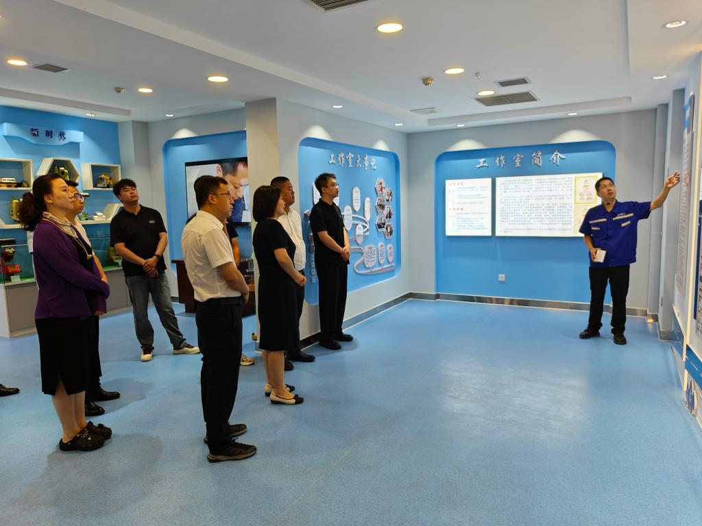 8月6日上午9时,世界杯体育官方网站一行在全国劳模白芝勇的带领下,参观了白芝勇劳模创新工作室,该工作室于2013年7月成立,2014年8月和2015年10月,工作室先后顺利通过陕西省人社厅和国家人力资源和社会保障部的验收,被授予“国家级技能大师工作室”称号。全国劳模白芝勇从团队构成、人才培养、科研成果创新、社会影响和贡献等方面对工作室进行详细介绍。