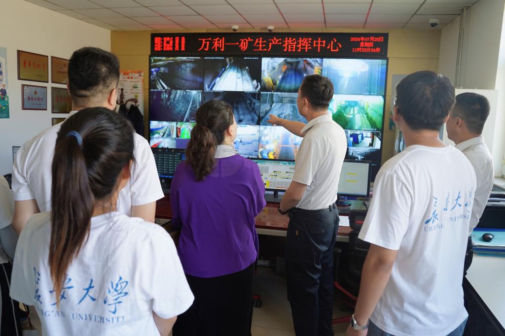 7月25日,实践队走进万利一矿,党委书记刘建超与副矿长李志平详细介绍了矿区基本情况与矿区作业的基本流程。实践队员了解到,万利一矿始终坚持问题导向,强化科技创新能力,通过创新工作室研发清煤机械手与单轨吊运科装置,显著提升掘进效率,超计划完成掘进任务。实践队员随即参观了万利一矿生产指挥中心,切身感受到科技发展为能源产业带来的极大变革。