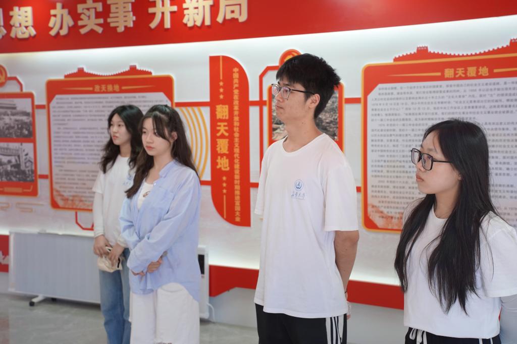 接下来,实践队员们来到了漫赖村乡村振兴培训中心进行参观学习。培训中心由废弃漫赖小学翻新改造建成,设有党史展厅、教室、民宿、餐厅、宿舍和户外训练拓展基地,可同时满足教学、训练、住宿、就餐等需求。通过漫赖村"红色研学+生态农业旅游"发展新模式,实践队员们深刻认识到,乡村振兴战略的实施需要不断创新思路、拓宽视野、整合资源。队员们纷纷表示将持续关注乡村振兴,为推动中国式农业农村现代化贡献自己的力量。