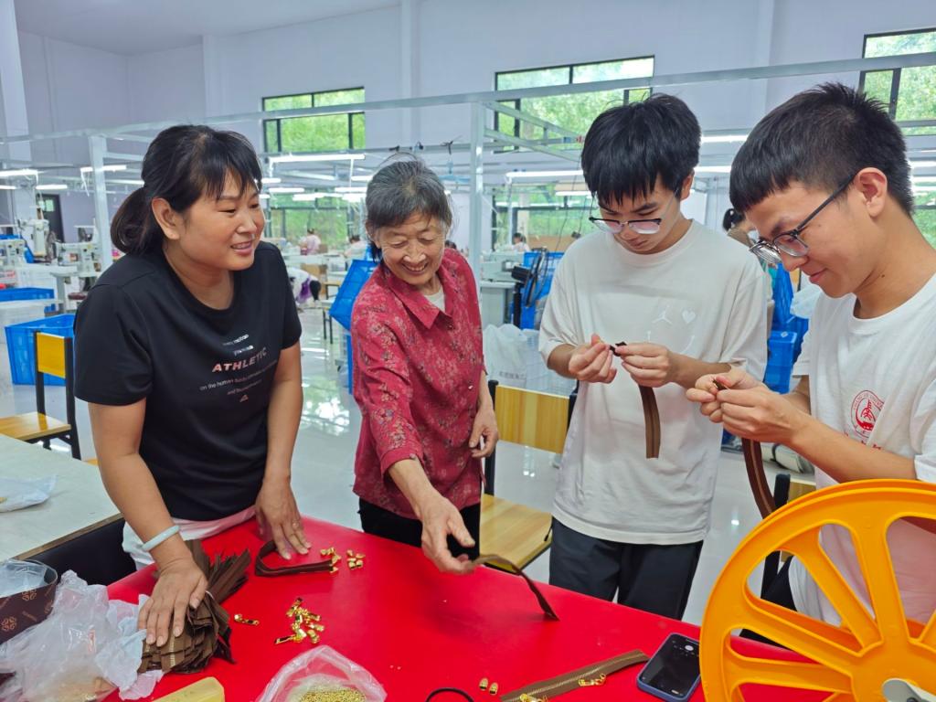 实践队员学习制作箱包零件