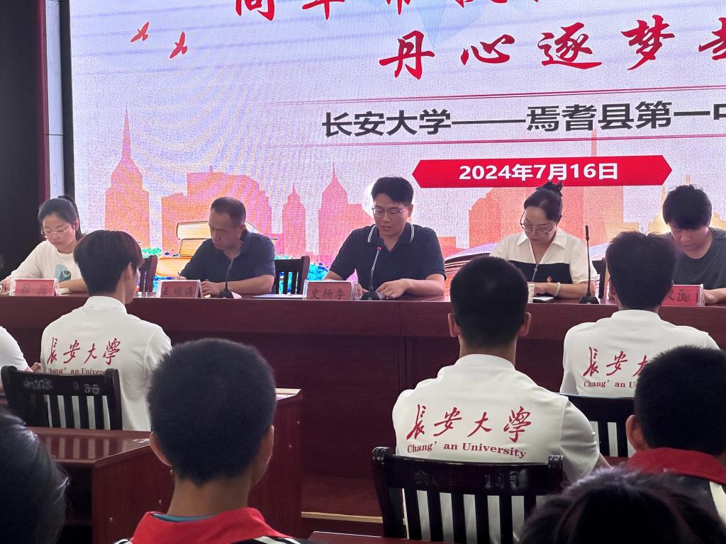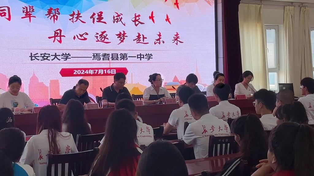 为深入学习贯彻习近平新时代中国特色社会主义思想和党的二十大精神,服务铸牢中华民族共同体意识,推进中华民族共同体建设,教育引导广大青年学生为全面建设社会主义现代化国家、全面推进中华民族伟大复兴贡献青春力量。世界杯体育官方网站赴新疆焉耆暑期支教社会实践队,于2024年7月16日9:30在焉耆县第一中学报告厅隆重举办“同辈帮扶促成长,丹心逐梦赴未来”开班仪式。本次开班仪式由焉耆一中团委副书记李慧主持,焉耆县第一中学副校长杨娅莉、焉耆一中教师代表年级组长叶忠玲等领导嘉宾、实践队指导老师史杨季及实践队全体同辈帮扶志愿者共同参会。