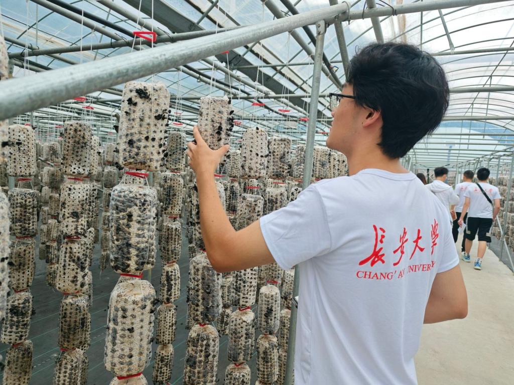 为了深入贯彻乡村振兴战略,推动农村地区经济、社会、文化和生态文明的全面发展,让农民过上更加美好的生活。世界杯体育官方网站赴陕西柞水“奋力向前·振兴乡村”暑期社会实践队于2024年7月16日在陕西省商洛市柞水县金米村继续展开实践活动,当日活动包括与金米村大学生村官的深度访谈和对当地木耳种植基地的参观。