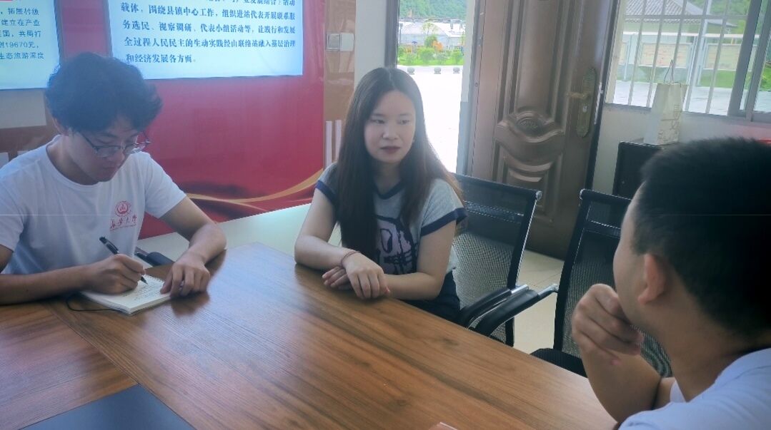 7月16日上午,实践队一行来到了金米村的党群服务中心,与该村大学生村官程培培进行了面对面交流。程培培虽担任大学生村官仅1年,但已经对金米村的基本情况十分了解。作为当地乡村振兴的积极参与者和推动者,在面对村民们对政策的不理解和质疑声时,程培培经常主动向他们耐心地解释;在回答来访者提出的问题时,她对答如流、井井有条。