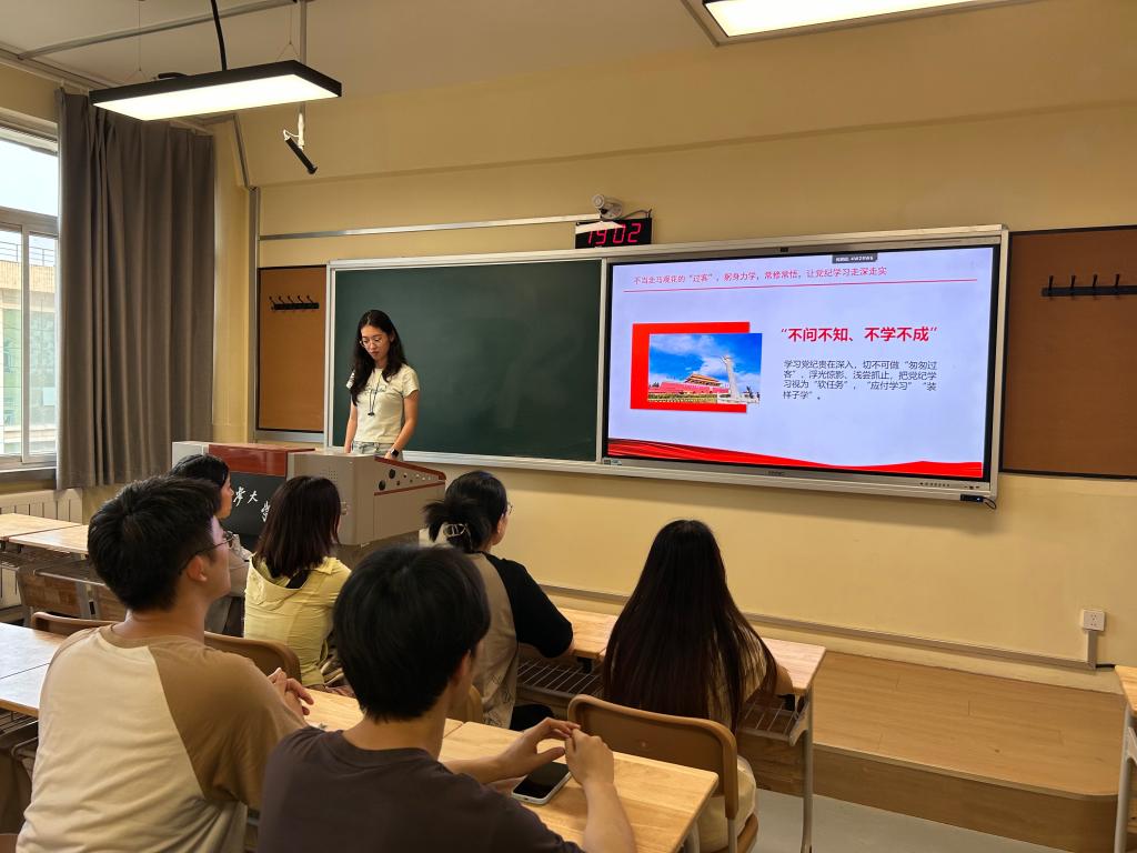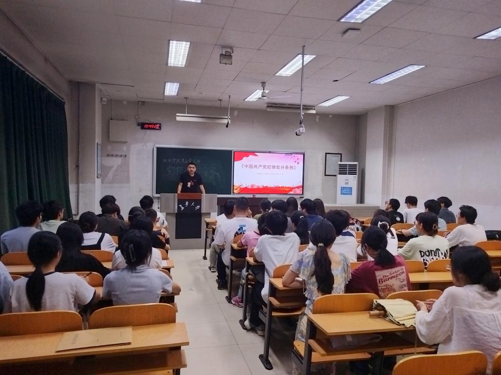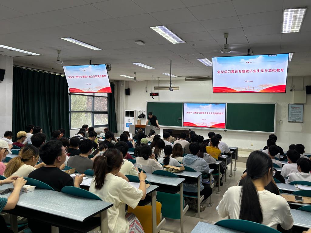 强化思想引领,永葆政治本色。学院出台《中共世界杯体育官方网站委员会开展党纪学习教育的实施方案》,对各级党组织和党员的学习内容、学习方式进行明确要求,切实抓好理论武装;以毕业生党员为主体,通过“年级大会、支部大会、支部书记讲党课”等多种形式上好一节党纪学习教育党课,坚定前行信念;将过好一次“政治生日”、重温入党誓词等作为毕业生党员教育的重要载体,强化党员身份意识,永葆政治本色。