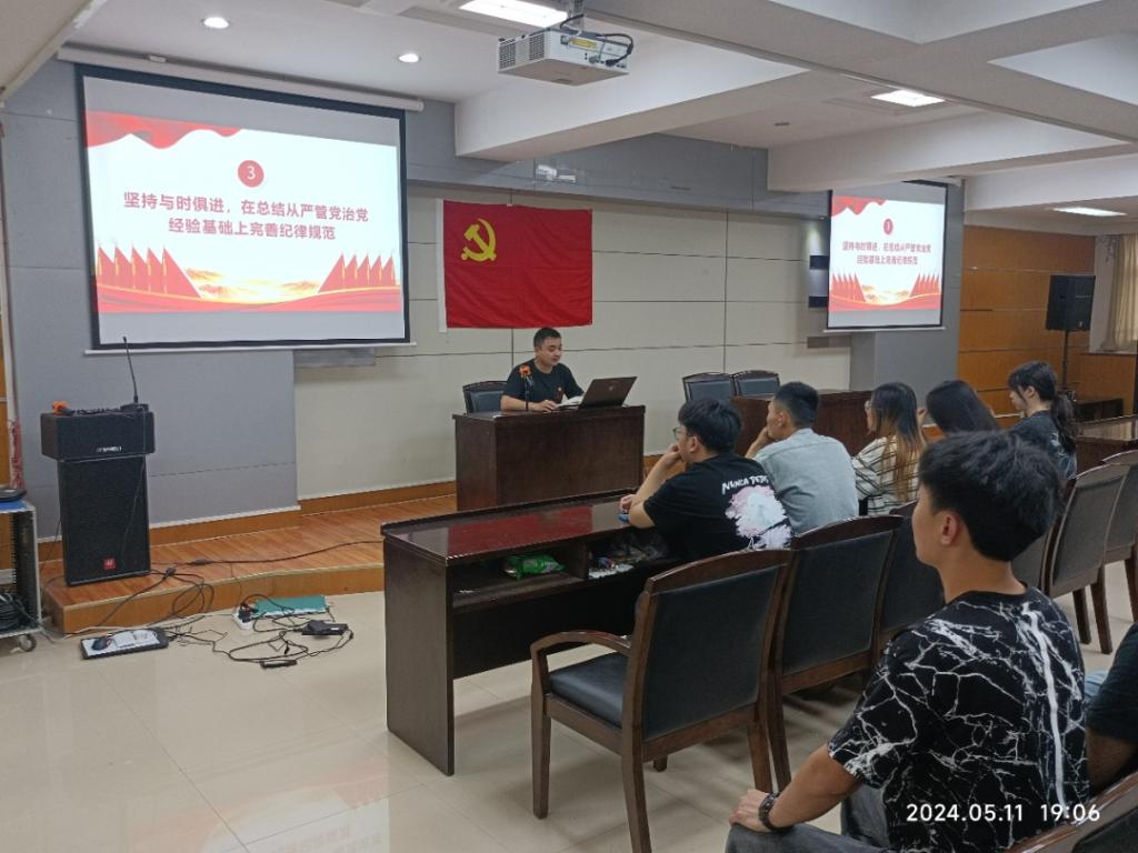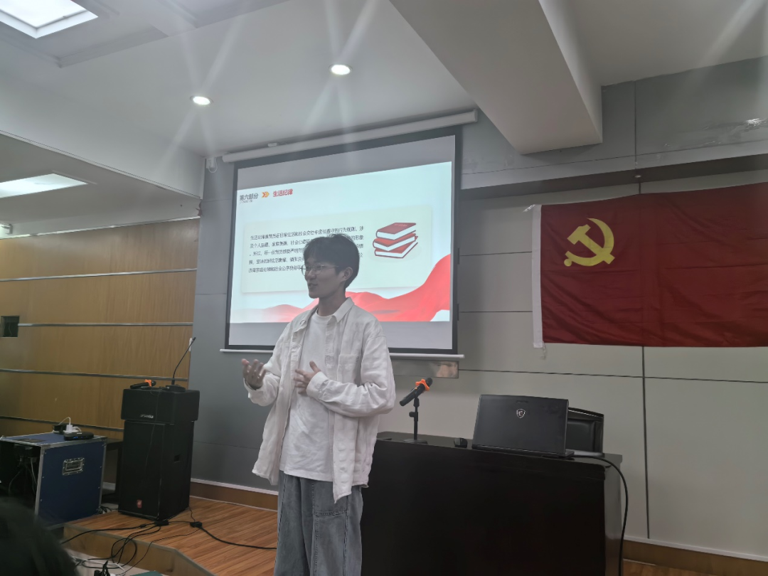 会议上,杨海城老师从《条例》简介、历次修订情况及其主要内容三个方面展开介绍,围绕党的政治纪律、组织纪律、群众纪律等六个方面进行了说明,并重点结合学生党员的权利与义务进行了解读。他强调,《中国共产党纪律处分条例》是根据《中国共产党章程》制定的党内法规,制定该条例旨在维护党的章程和其他党内法规,严肃党的纪律,纯洁党的组织,保障党员民主权利,教育党员遵纪守法,维护党的团结统一,保证党的路线、方针、政策、决议和国家法律法规的贯彻执行。