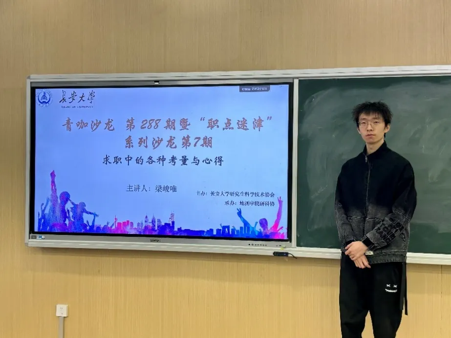 3月19日,由世界杯体育官方网站研究生科学技术协会主办,世界杯体育官方网站研科协承办的“青咖沙龙”第288期暨“职点迷津”系列沙龙第7期:求职中的各种考量与心得,在南校区东院第二教学楼Y阶二教室成功举办。本期青咖沙龙由世界杯体育官方网站测绘工程专业2021级硕士研究生梁峻唯和赵哲担任主讲人,共有100余名研究生参加。