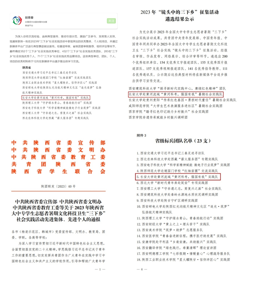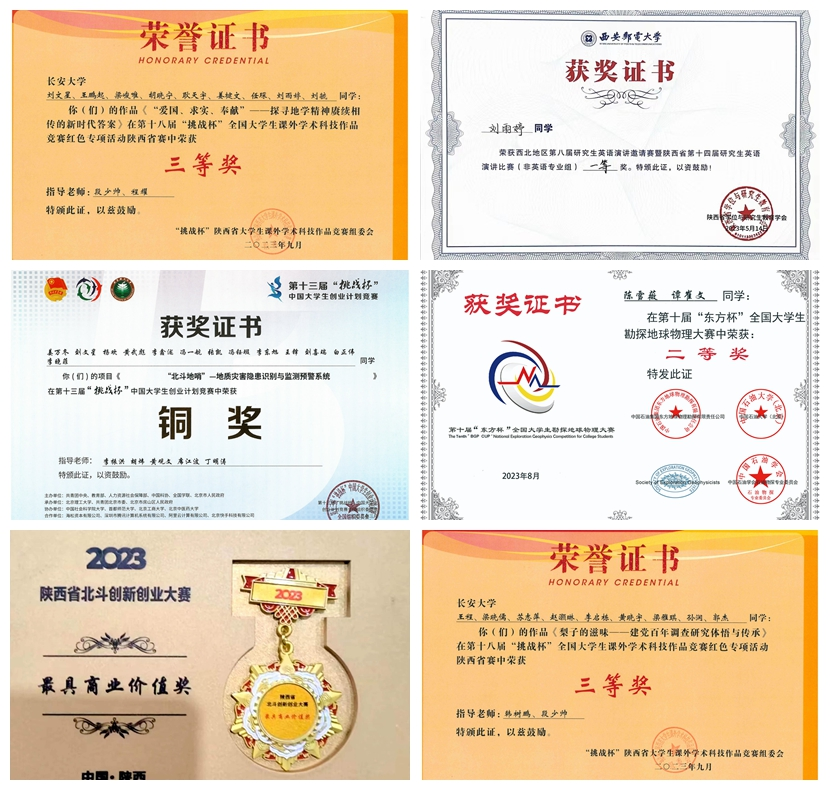 此外,2022-2023学年,1位教师受共青团陕西省委授予青年科技奖,3位教师成功申报2023年秦岭生态科学考察行动选题。