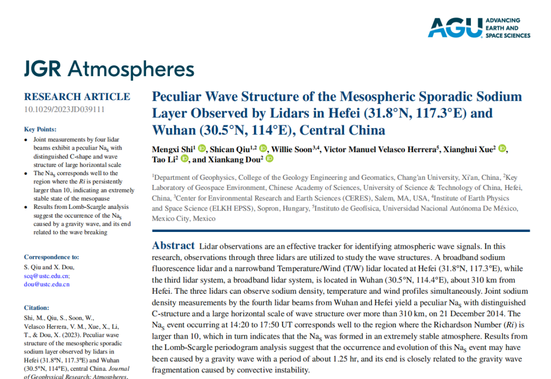 硕士生在《Journal of Geophysical Research: Atmospheres》期刊上发表高水平论文