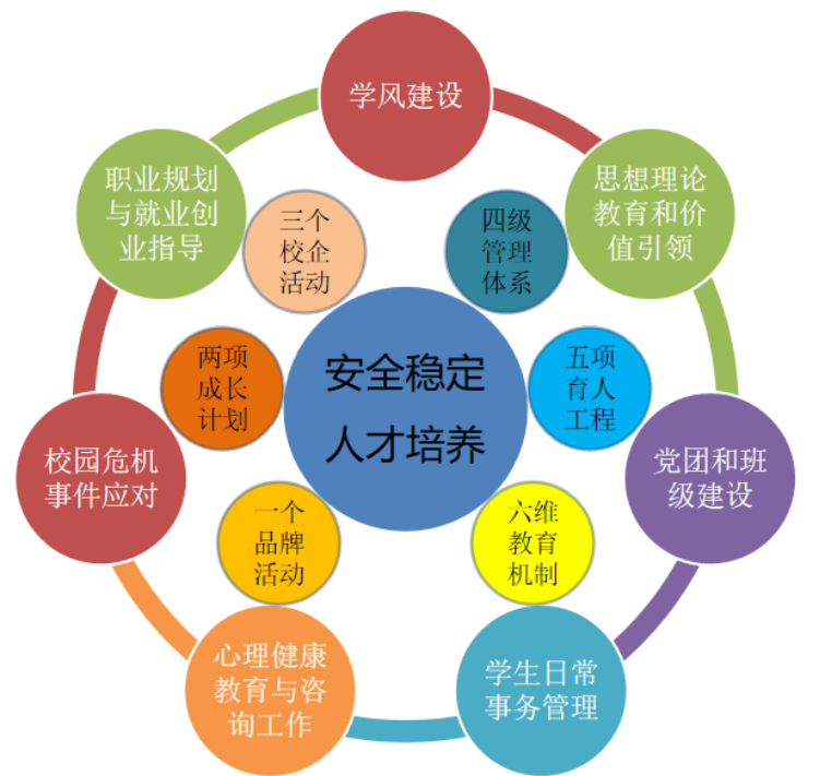 2023年度,世界杯体育官方网站学生教育与管理工作在院党委的领导下,坚持以立德树人为根本任务,以学生为中心,全员全过程全方位育人,不断落实主体责任,扎实推进学生工作,逐步形成“一心双环、六项重点、七大职责”工作构架。