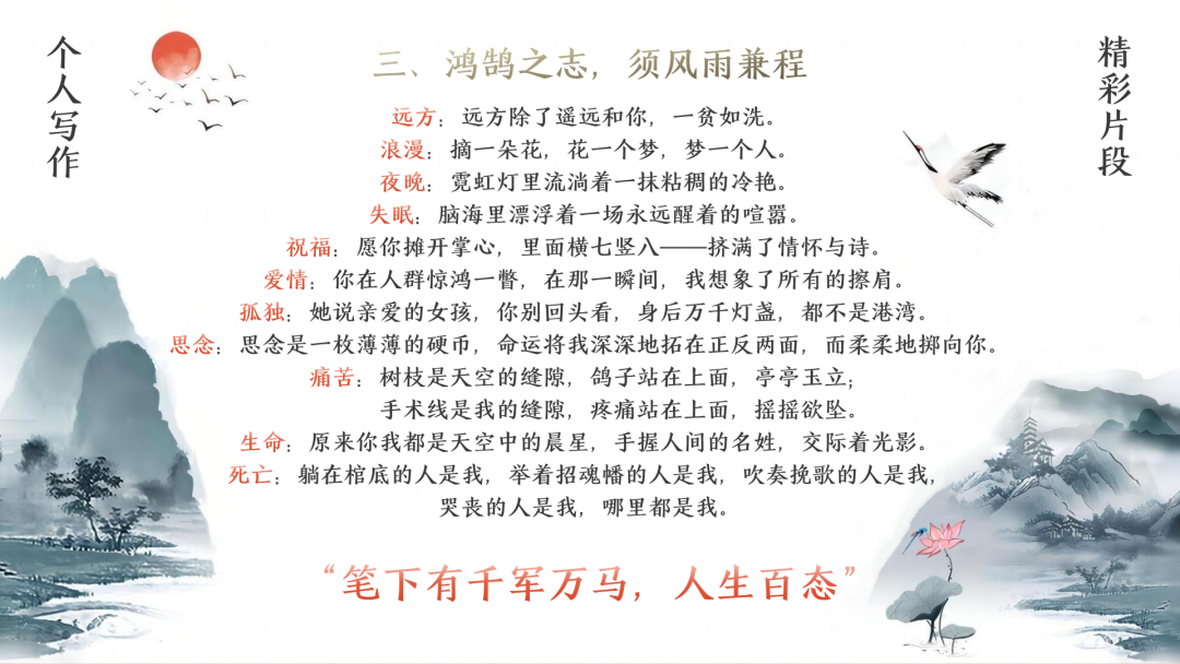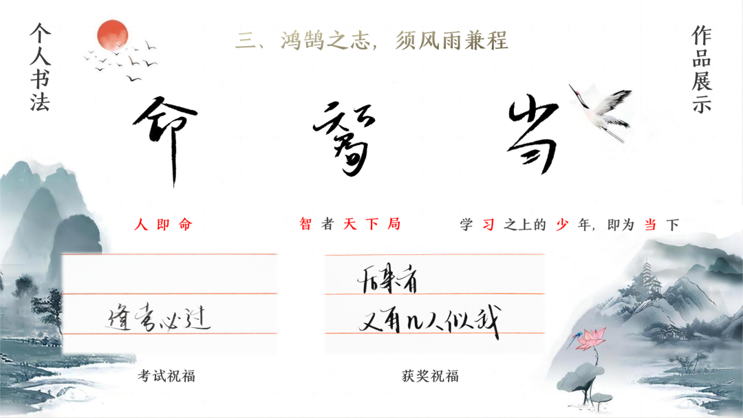 “鸿鹄之志,风雨兼程”。写到,说到,自然也要做到。
