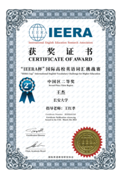5.“IEERA杯”国际高校英语词汇挑战赛中国区二等奖。