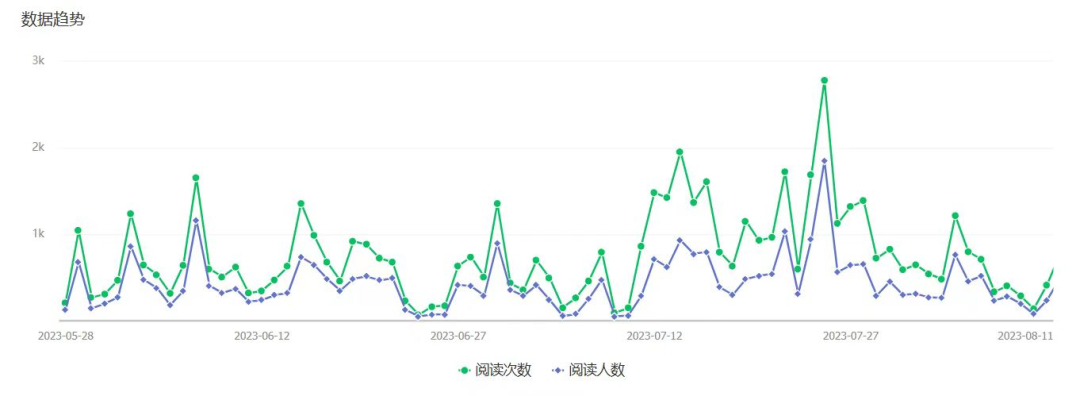 2022年至今,共计推出361篇,内容涵盖了各类活动新闻稿、公示以及相关重大时间节点原创推送,累计阅读量235771次,,日均阅读量达200次,其中单日最高阅读量高达3939次;目前,已累计67054人关注公众号,常读人数2400余人。