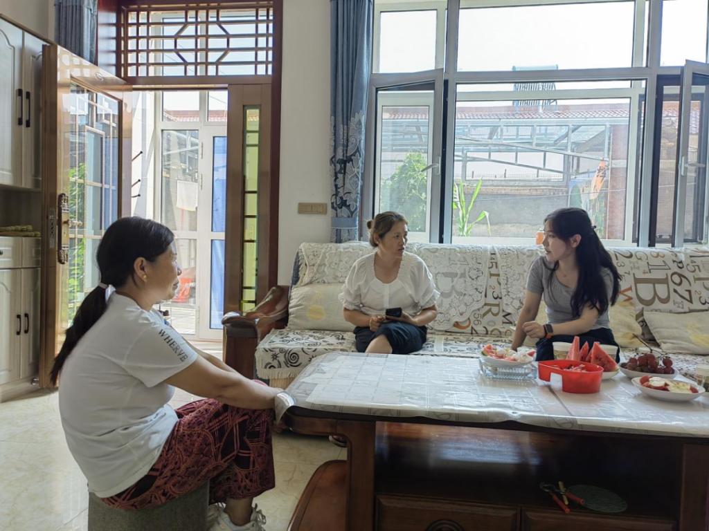 与受访学生家长交流