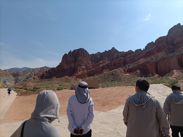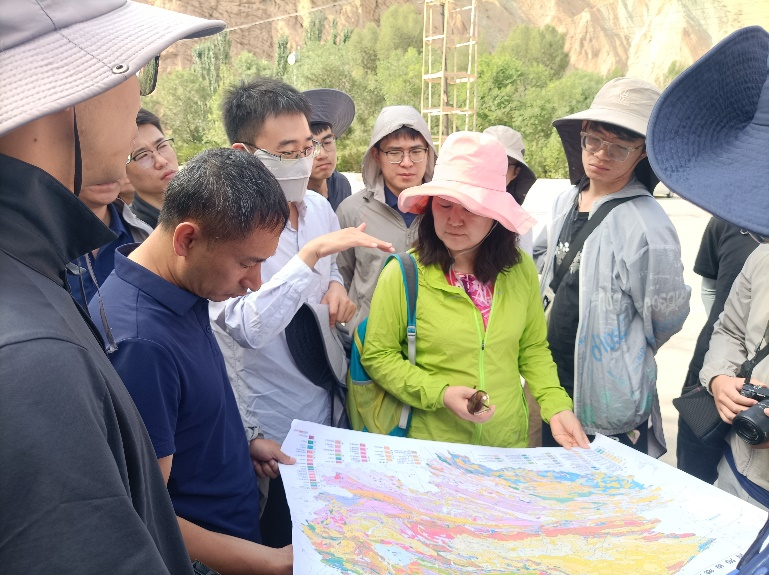 实践队一行首先抵达贵德国家地质公园。贵德国家地质公园以:“地脉绵延根在地,人缘千古情为源”为内涵,以“七彩峰丛、轩辕后土”为主题构建。公园内的女娲峡、千佛峡、通天峡等都是世界上罕见的自然奇观,科考队王祚鹏老师结合青海省地质图对地质公园的构造背景进行详细的讲解。另外,实践队杜建涛博士操控无人机从空中查看地质公园的地形和地貌。贵德国家地质公园作为中国地质公园体系中的瑰宝,不仅展现了壮丽的地质景观,更将生态保护与高质量发展深刻的融入其中。