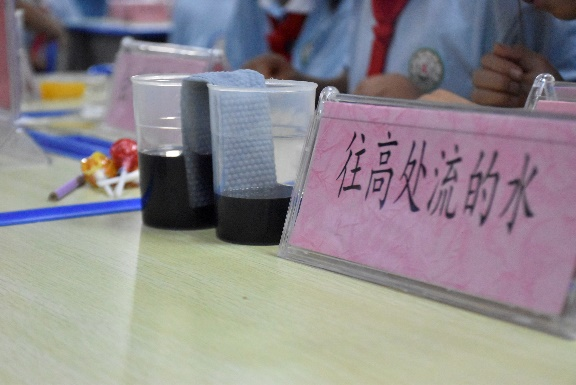 为让科技文化知识以更接地气、更有厚度、更见实效的方式传播出去,趣味水实验环节以“授课+动手操作”的形式,激发小学生对科学知识的浓厚兴趣。基于科普性、趣味性、可行性这三大基本原则,实践队最终确定了6个实验作为授课内容——水的魔力、往高处流的水、会动的牙签、悬浮在水面的鸡蛋、胆小的胡椒粉以及水的张力,上述实验囊括了虹吸现象,水的密度、表面张力、折射、浮力等知识点,内容详实,富有趣味。