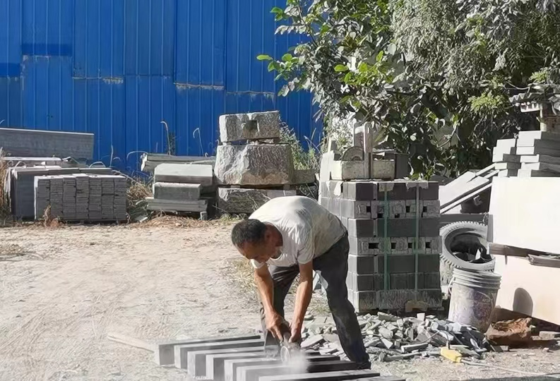 在此过程中,有工匠正在雕刻一块碑石,成员们在旁观察了其制作的过程,石刻工匠一丝不苟,精益求精,每一个动作都熟练到位。实践队在与负责人的交流中了解到,富平作为陕西石刻保护和研究的重点县市之一,全县石刻作坊、企业已达460多家,约有八千工匠从事这项行业,他们不仅肩负县内石刻产业的发展重任,更是肩负着这项传统文化的传承与发展。然而,目前学习这项技艺的人都在35岁以上,技艺的断代问题亟待解决。