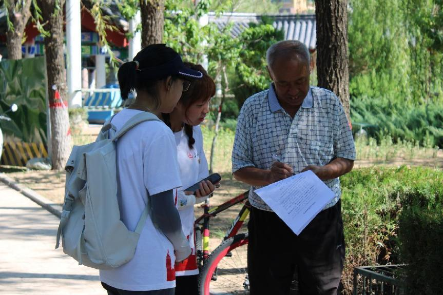 图为实践队成员们在貂蝉公园为市民们进行环保宣讲