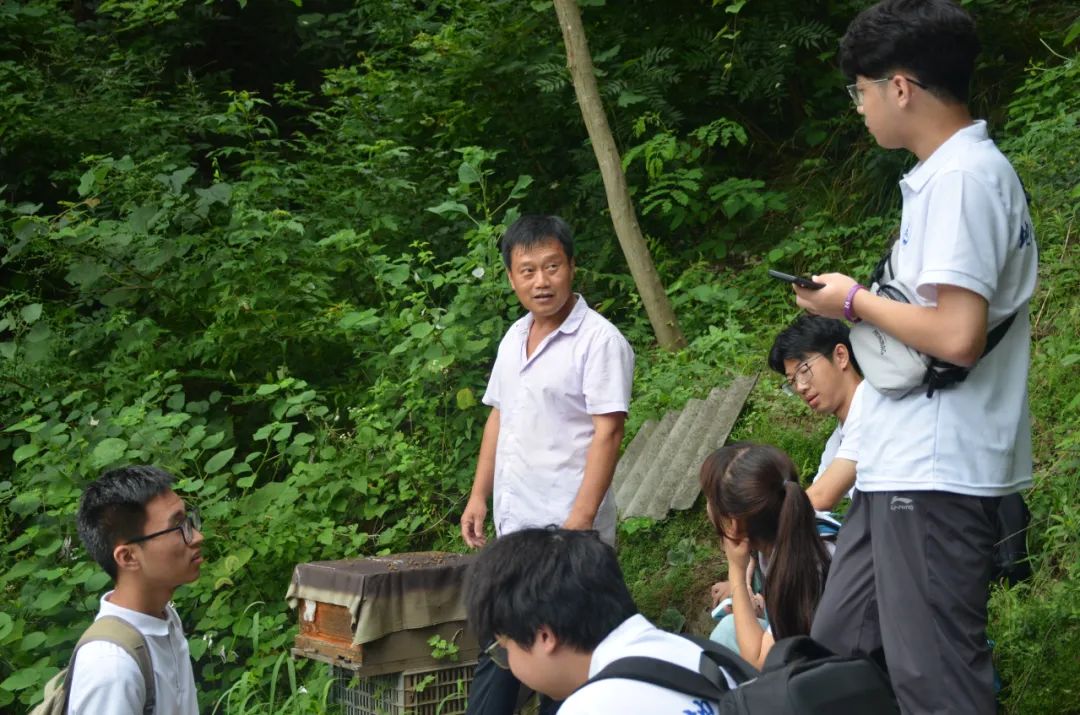 为深入贯彻落实党的二十大精神,助力乡村产业高质量发展,全面推进乡村振兴。2023年7月14日,世界杯体育官方网站赴陕西商南“探寻中国梦·走访新农村”暑期社会实践队深入田间地头和村屯农家,前往二郎庙村中华蜂养殖基地进行实地调研。
