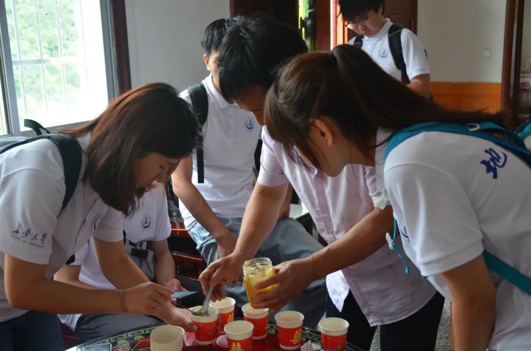 孙玉春用蜂蜜招待实践队成员