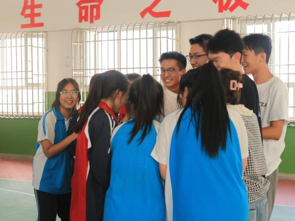 从陌生到熟识,从拘谨到活跃,整个团体辅导氛围融洽,同学们和志愿者们都全身心投入到了游戏之中,纷纷洋溢着灿烂的笑容。在游戏的间隙,实践队志愿者也为同学们表演了各自的才艺:王博的武术表演让同学们感受到了中华武术的魅力,帕丽扎提·亚生江带来的欢快而富有节奏的哈萨克族舞蹈也让同学们大开眼界,一首《我和我的祖国》全员大合唱更是将团体辅导推向了高潮......