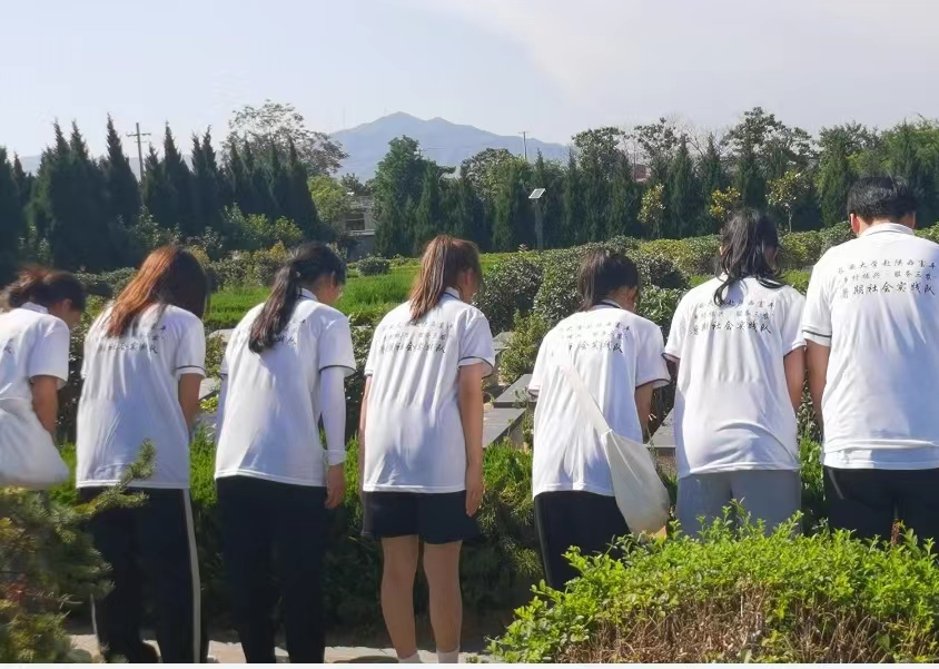 为深入学习贯彻落实习近平总书记关于青年工作的重要思想,引导广大青年学生在社会课堂中受教育、长才干、作贡献,在观察实践中学党史、强信念,坚定听党话、跟党走,努力成为担当民族复兴大任的时代新人,世界杯体育官方网站赴陕西渭南“乡村振兴·服务三农”暑期社会实践队于7月11日走进康庄战斗烈士陵园,聆听英雄事迹,缅怀革命先烈。