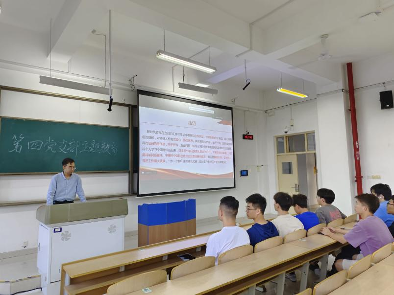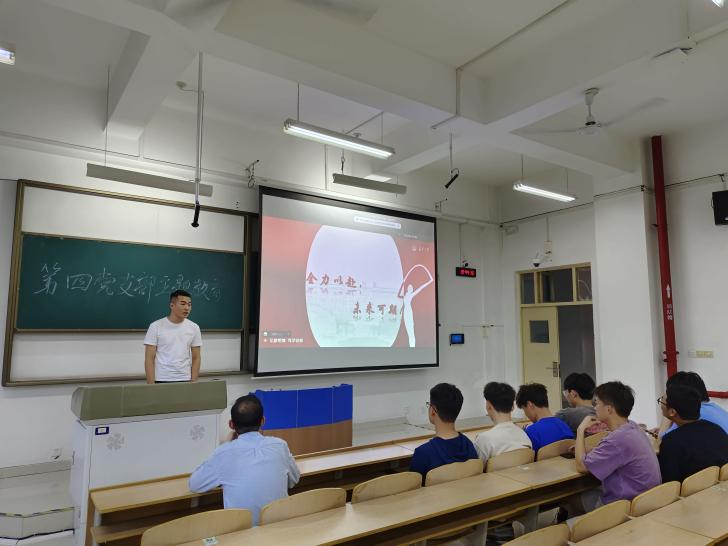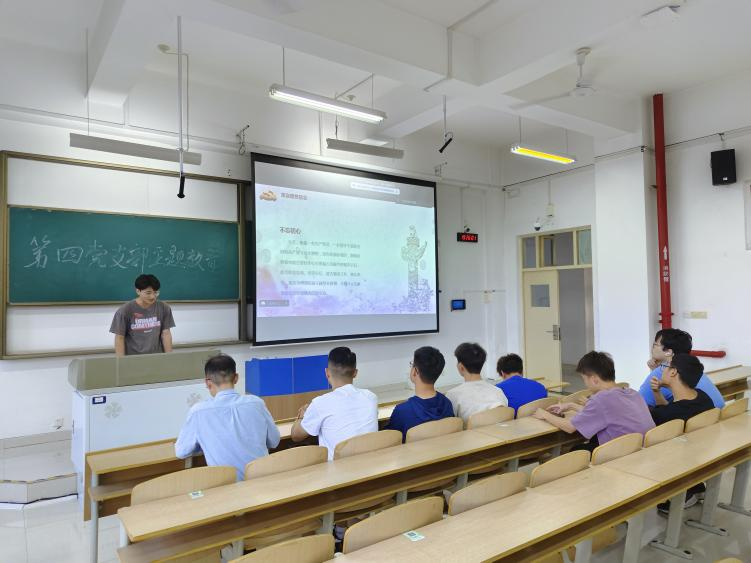 为深入开展学习贯彻习近平新时代中国特色社会主义思想主题教育,加强党员的爱国主义教育和理想信念教育,高质量高标准开展主题教育。2023年6月8日晚19:00,世界杯体育官方网站本科生第四党支部开展支部书记讲党课活动,第四党支部全体党员参加了本次活动。