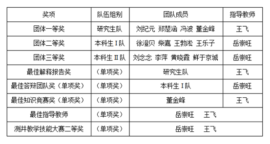 世界杯参加第七届全国大学生测井技能大赛获奖情况