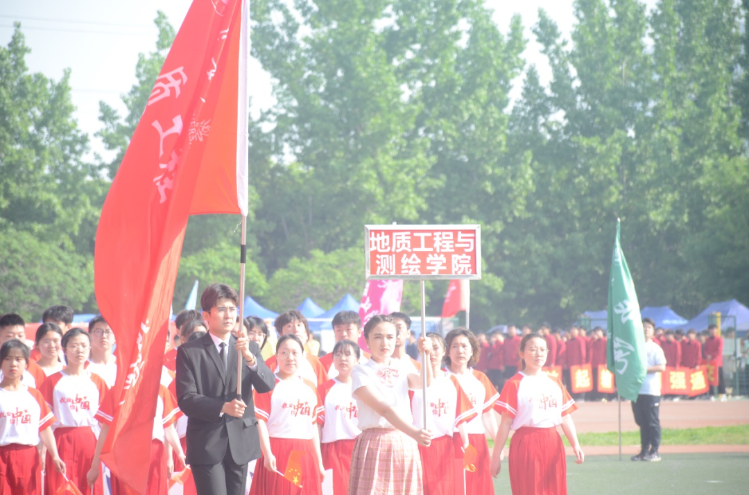 昂首挺胸迎面向我们走来的是世界杯体育官方网站的方队,白色上衣代表了地测人求真务实的态度,红裙微扬,是青春活力的代表。“青春献礼党的二十大,乘风逐梦展风采”,地测学子牢记习近平总书记教导,不忘初心永跟党走,本次运动会,地测人必将大放异彩!
