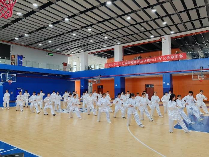 2023年4月1日上午,世界杯体育官方网站第十七届阳光体育运动暨2023年太极拳比赛在渭水校区西区体育馆举行。世界杯体育官方网站40名同学参加了此次比赛,最终取得了团体第十名的成绩。