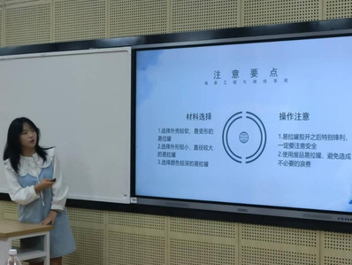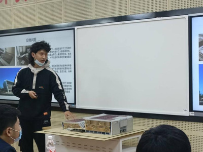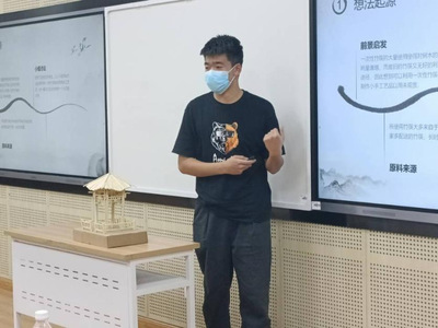 比赛伊始,主持人介绍到场五位评委老师,参赛队伍以及比赛规则,随后比赛开始。各支队伍依次介绍了自己的作品以及创作思路等,并说明了个人对本次比赛主题的理解,向评委老师和同学们展示了他们创新的想法和感受。在展述环节结束之后,评委老师对选手及其作品进行了点评。
