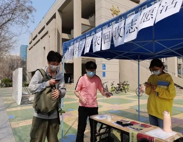 衣服回收阶段,志愿者们进行轮流值班呼吁同学们积极参与活动并向同学们讲解捐赠流程,捐赠衣物去向等信息。活动起始至今,志愿者们认真积极地工作,参与活动的同学们热情饱满地配合保证了此次活动顺利进行。但由于疫情原因,本次活动于2022年3月13日被迫中止,预计将于疫情结束后继续开展。