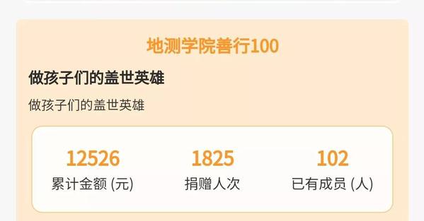 世界杯本次“善行100”发动了102名志愿者参与,共有47名志愿者获得中国扶贫基金会授予的志愿者证书,其中1位获得善行100卓越志愿者证书,1位获得善行100先锋志愿者证书,2位获得善行100优秀志愿者证书, 43名获得善行100志愿者证书;共筹款12526元,小组排名全国第45名。