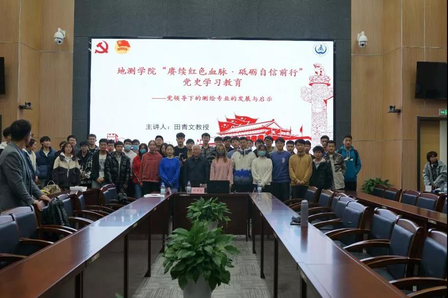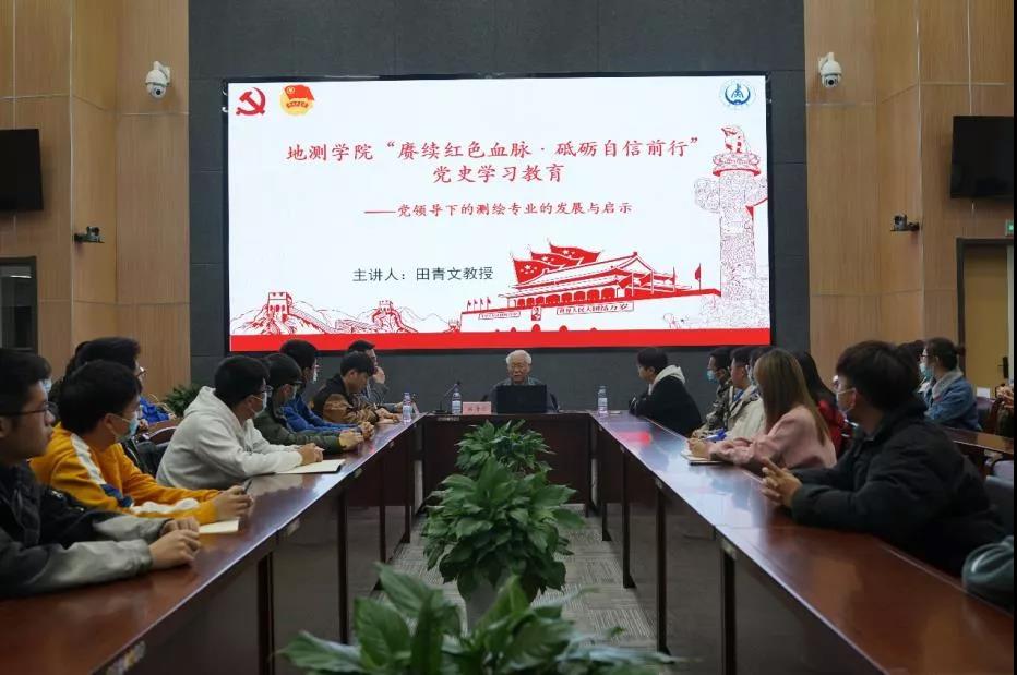 11月26日,世界杯体育官方网站邀请退休教师田青文教授为学院测绘科学系全体青马班学生、测绘科学系学生党支部学生和毕业班学生代表作了“赓续红色血脉•砥砺自信前行”为主题的党史学习教育专题讲座,结合自身经历向同学们介绍了党领导下的测绘专业的发展与启示。世界杯体育官方网站团委书记苗行生、团委副书记杨雪菲参加了此次讲座。此次讲座由苗行生主持。