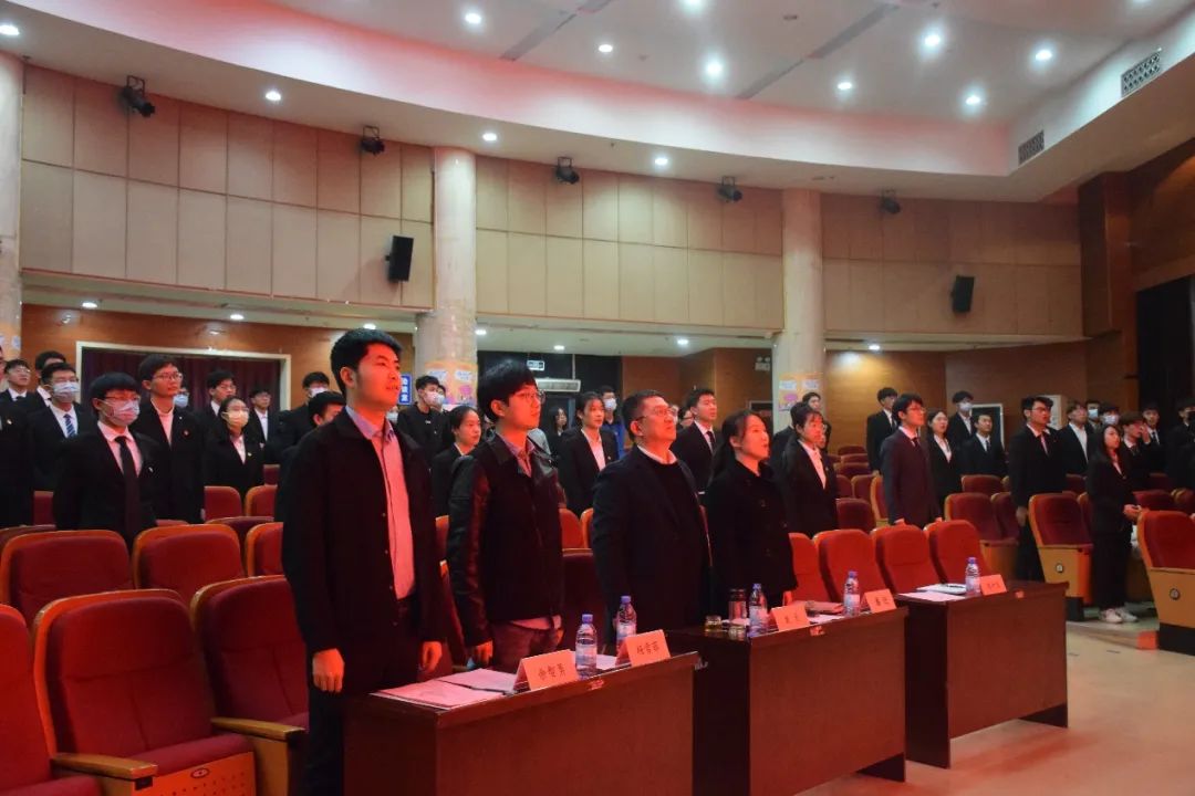 仪式伊始,全体起立奏唱国歌。