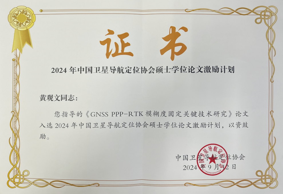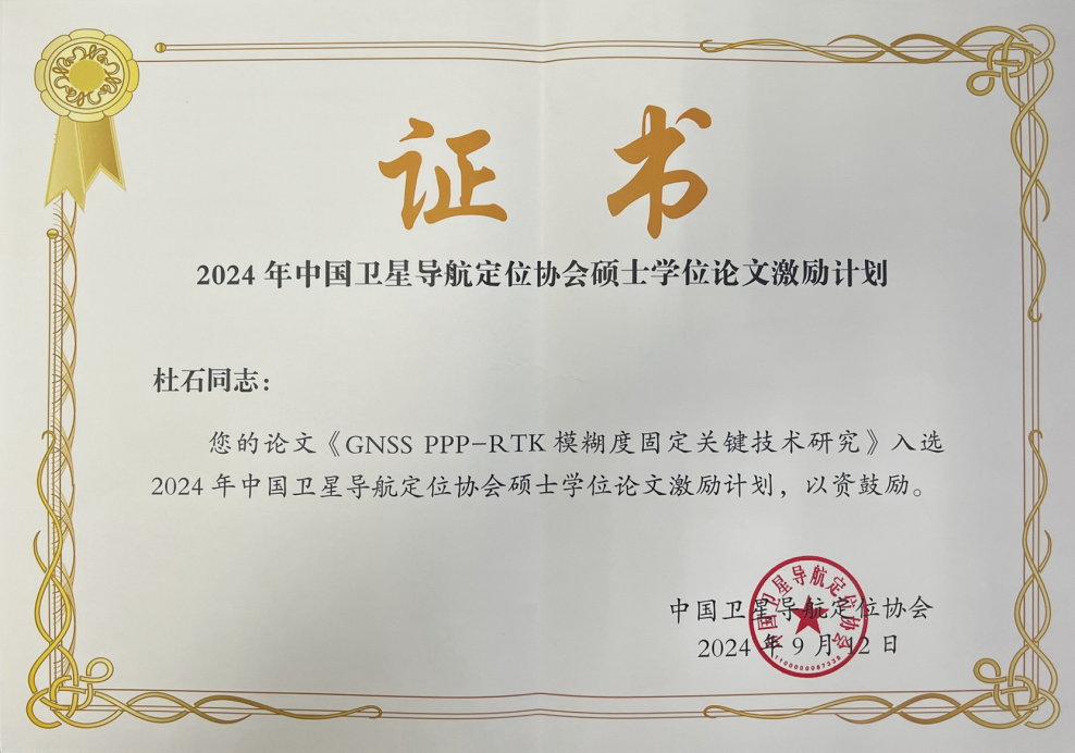 近日,经学位论文评审委员会终评,2024年度中国卫星导航定位协会论文激励计划评选结果出炉,本年度全国共评选出10篇优秀硕士学位论文,世界杯2022届硕士研究生杜石的学位论文《GNSS PPP-RTK模糊度固定关键技术研究》成功入选2024年度中国卫星导航定位协会硕士学位论文激励计划,指导老师为黄观文教授。