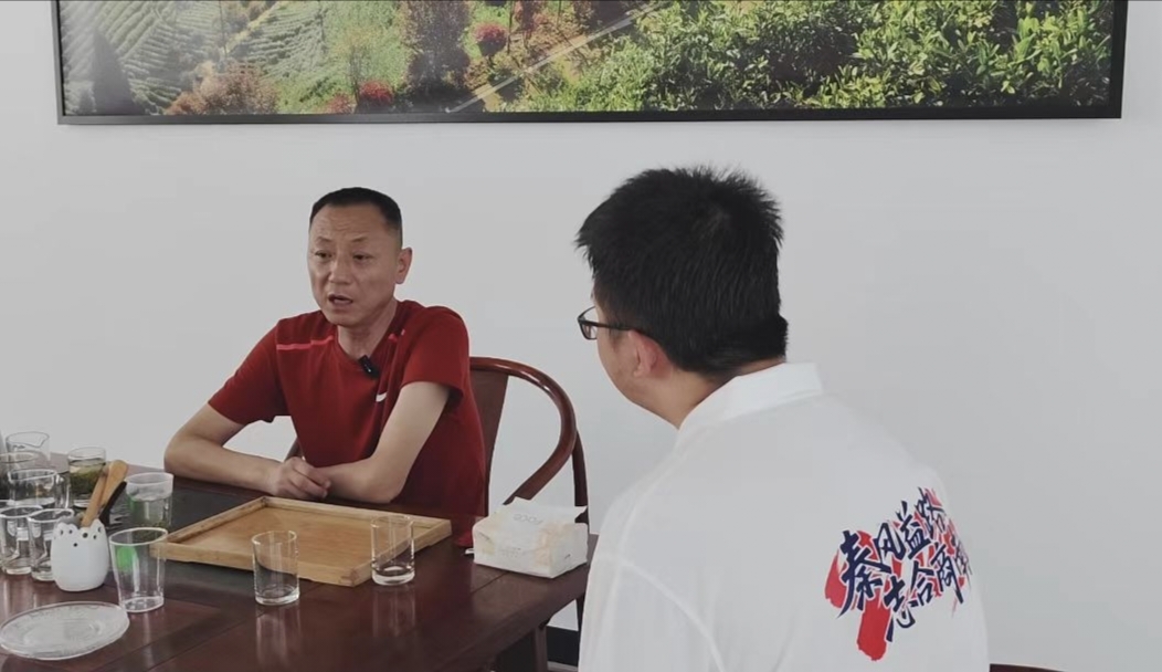 最后实践队对陈洪涛进行专访,他详细讲述了双山茶叶联营公司的发展历程。访谈中,陈洪涛分享了基地带动村民就业、助力乡村振兴的具体举措,让团队成员对产业发展与民生改善的紧密联系有了更深刻的理解。最后,陈洪涛表示,希望同学们珍惜美好时光,勤学本领,在未来成为建设美丽家乡的栋梁之才。