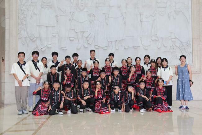 适逢“‘心手相牵·筑梦黔行’铸牢中华民族共同体意识·各族青少年交流计划主题研学活动”在馆内举行,实践队成员与研学活动小朋友们共同开展非遗剪纸与扎染技艺,参与表演布依族、苗族等民族节目排演,以传承激发创新,在每个参与者心中种下“美美与共”的种子。