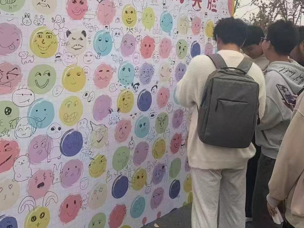 活动期间,路过的同学纷纷好奇张望,在志愿者的热情“张罗”下,行人陆陆续续走上前一探究竟。同学们纷纷拿起马克笔,在笑脸墙上创作起来。开朗的、可爱的、创意的、潇洒的、怪诞的……五花八门的“笑脸”让大家捧腹大笑,这些承载心意的作品被展示在校园显眼位置,成为传递温暖的风景线。