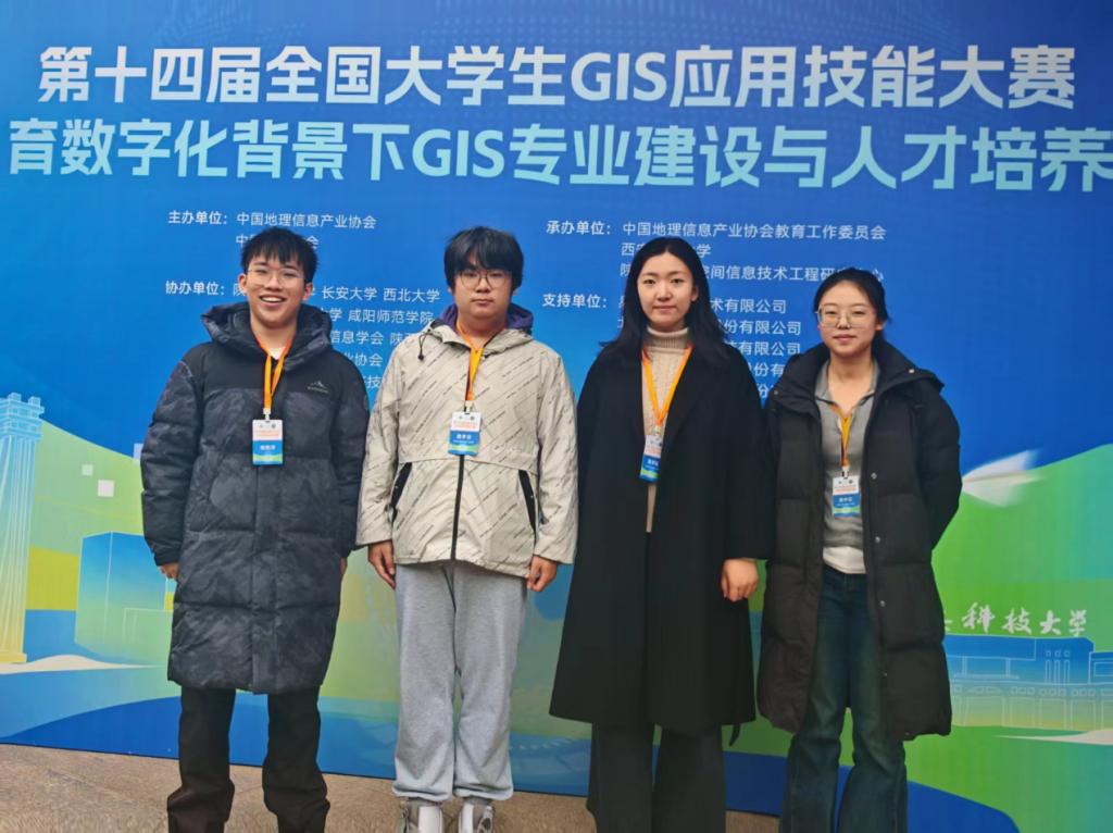 2025年11月14日至16日,第十四届全国大学生GIS应用技能大赛在西安科技大学成功举办。世界杯来自世界杯体育官方网站和土地学院的四名学生(张凯洋、刘天昊、吴烨楠、张梦茹)联合组队,在指导教师赵建林和吴田军的携手带领下,在首届全国大学生GIS应用技能大赛陕西省邀请赛中荣获特等奖,并在此次全国大赛中荣获二等奖。