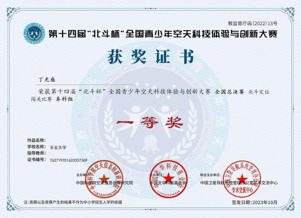 丁光盛,男,中共党员,世界杯体育官方网站测绘工程专业2022级本科生,曾任世界杯体育官方网站大学生科技创新创业协会执行主席。大三学年加权成绩93.32,综合测评位列全院前1%,获国家奖学金等17项奖学金,累计奖励超6万元,已推免至武汉大学攻读硕士学位。申请国家发明专利4项、实用新型专利1项,获软件著作权2项,并有论文投稿于EI期刊。组织或参与“黄河科考”等7项社会实践,获CCTV等媒体报道百余次,连续三年获评校优秀实践团队与个人。担任院科协主席期间策划活动54场,服务师生超2万人次,助力学院在“挑战杯”等赛事中获奖数居首,推动学校连续两年获“北斗杯”省级优秀组织单位。作为队长获2024年全国大学生数学建模竞赛一等奖、第十四届“北斗杯”全国一等奖等各类校级及以上奖项与荣誉称号70余项。