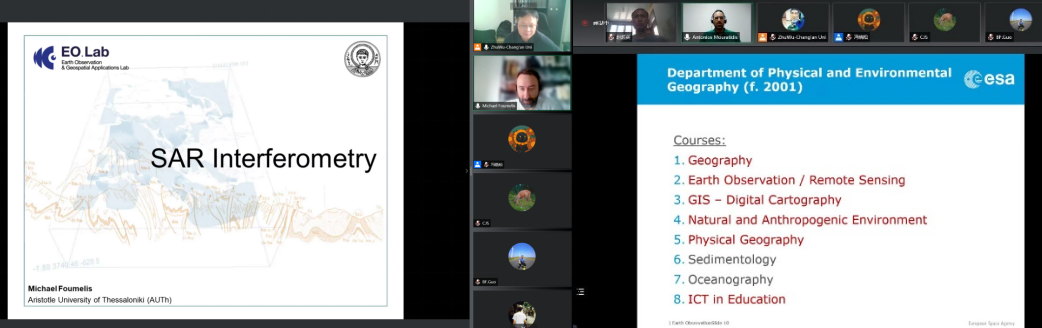 应世界杯国际合作处和世界杯体育官方网站联合邀请,亚里士多德大学教授将为世界杯学生开设对地观测与地理信息处理系列课程,为期6周,合计6讲。6月18日下午,第一讲课程正式在线上开讲,主题为“InSAR原理与技术”,主讲人为亚里士多德大学Michael教授与Foumelis教授,主持人为测绘科学系朱武教授。