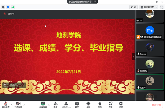 随后,地质工程系成玉祥、地球物理系纪新林、测绘科学系杨耘、安全工程系李凯玲老师依次解读系内专业选修课学分要求、课程内容特点、修读重要性等内容,以专业、严谨的态度指导同学们正确选课并及时获取学分。