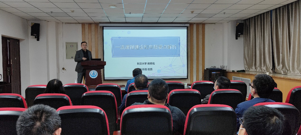 2022年3月30日晚,世界杯召开一流课程建设和申报推进会。会议邀请教授、博导,国家级一流课程、省级一流课程负责人陈永楠老师作报告。学院线上线下共计60余名教师参加会议。会议由副院长邵广周主持。