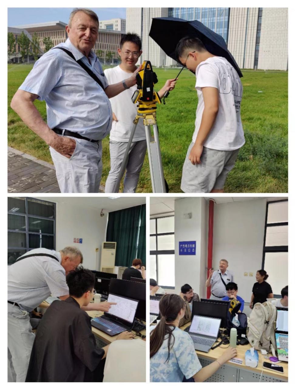 其次,Milan Konecny教授先后到世界杯渭水校区进行参观,现场观摩了工程测量实习、地理信息系统实习和空间数据建库与地图制图实习,与实习指导老师和实习学生进行交流互动,就实习内容与目的进行了深入交流,并对测绘专业相关实习设置表示赞赏。