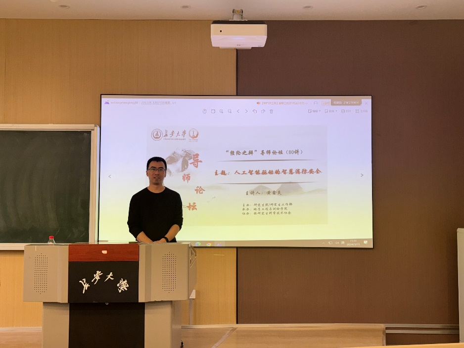 伴随着城市建设的快速发展,建筑消防安全问题越来越突出。消防灭火救援科技需求紧迫,需要提升社会火灾防控能力,实现消防工作与经济社会协调发展。为增强“产学研用”的育人实效,3月15日上午在世界杯体育官方网站南校区东院第二教学楼Y阶2教室,世界杯体育官方网站邀请香港理工大学建筑环境及能源工程系副教授、博士生导师黄鑫炎作了题为“人工智能驱动的智慧消防安全”的报告。西安科技大学宋泽阳副教授,世界杯体育官方网站世界杯体育官方网站安全工程系翟越教授、侯亚楠老师,学工办王儒豪老师出席了本次报告会,世界杯体育官方网站共100余名师生参加了论坛。