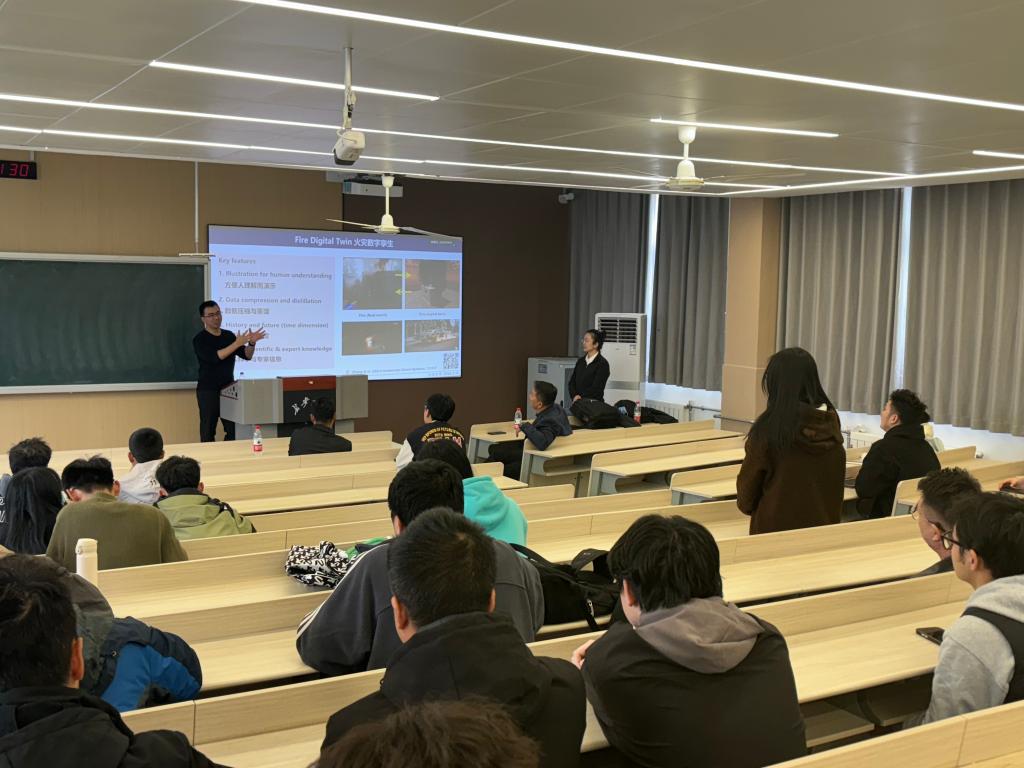 报告会交流环节,黄鑫炎副教授耐心解答了同学们的疑问,使同学们对人工智能驱动的智慧消防安全的科学研究有了更为深入的了解。