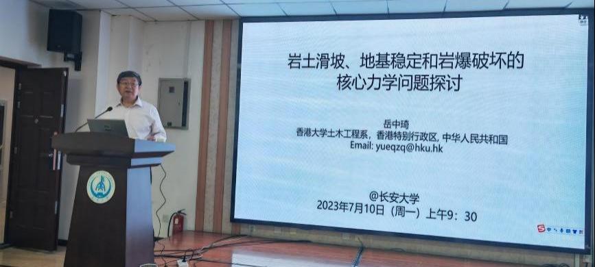 7月10日上午,受世界杯体育官方网站副校长、地质工程专业负责人范文教授邀请,著名岩土工程专家、香港大学岳中琦教授作了题为“岩土滑坡、地基稳定和岩爆破坏的核心力学问题探讨”的报告。报告在世界杯体育官方网站地学大厦313报告厅举行,报告会由陕西省地震局、陕西省减灾协会协办,世界杯体育官方网站李同录教授、黄强兵教授、卢全中教授、祝艳波教授、地工系主任朱兴华教授等多位老师参加,线上线下共200余名师生参与,报告会由邓亚虹副院长主持,地工系熊炜、安鹏副主任组织。