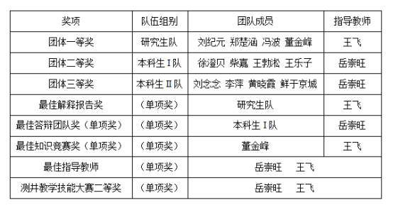 世界杯参加第七届全国大学生测井技能大赛获奖情况: