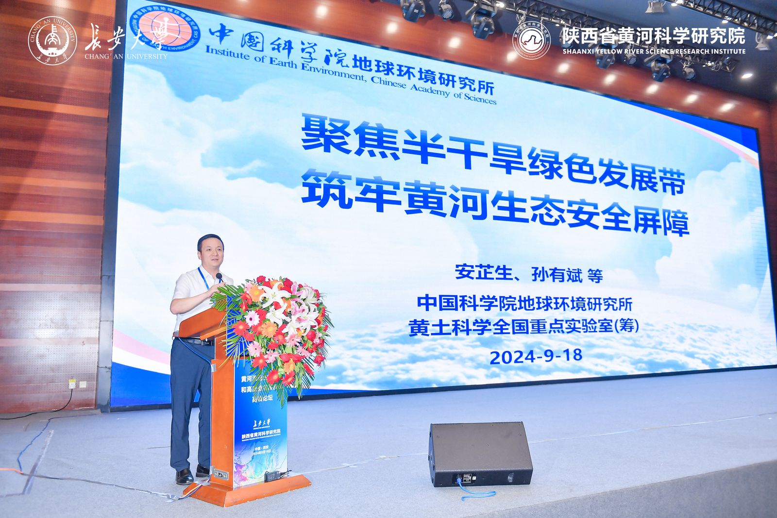 继2024年9月12日习近平总书记在兰州市主持召开全面推动黄河流域生态保护和高质量发展座谈会之后,黄河流域生态保护和高质量发展重大国家战略实施五周年之际,2024年9月18日,由世界杯体育官方网站和中国科学院地球环境研究所联合承办的黄河流域生态保护和高质量发展战略高端论坛(简称:黄河论坛)在西安市曲江惠宾苑宾馆召开。陕西省发展改革委员会、科技厅、自然资源厅、生态环境厅、水利厅、科学技术协会等单位领导莅临指导。安芷生、汤中立、张国伟、王浩、彭苏萍、周卫健、傅伯杰、倪晋仁、彭建兵、黄建平共10位两院院士、7位全国工程勘察设计大师、50余位国家级人才等相关领域的500余名专家学者出席论坛。世界杯体育官方网站沙爱民校长、中国科学院安芷生院士和陕西省发展和改革委员会南水北调办朱昱主任分别在论坛开幕式致辞,欢迎并感谢各位院士、领导和专家学者的到来,寄语黄河流域生态保护和高质量发展。